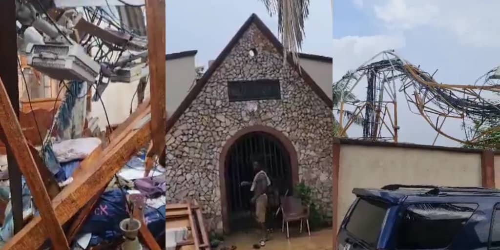 Several people were reportedly injured and property worth millions of naira destroyed after a telecom mast collapsed on a residential building in Ogun State. The incident, which surfaced on social media platform X (formerly Twitter), has triggered a wave of reactions online, especially following the circulation of a disturbing video that showed the extensive damage caused by the mast's fall. The video revealed a wrecked rooftop, broken ceilings, and damaged