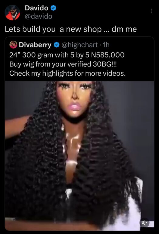 The fan, known as Divaberry on X (formerly Twitter), had earlier expressed her admiration for the singer while promoting her wig business. In her tweet, she described herself as a proud member of Davido’s fanbase and encouraged followers to patronize her brand.