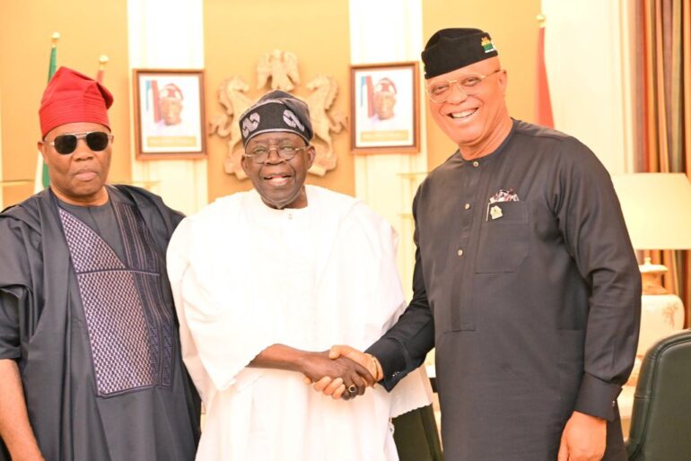 President Bola Ahmed Tinubu on Friday hosted Senate President Godswill Akpabio and Akwa Ibom State Governor, Pastor Umo Eno, at the Presidential Villa in Abuja.